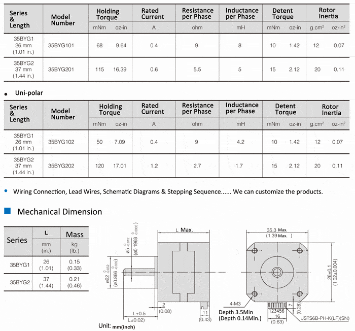 Step Angle: 1.8°± 5% full step, no load Shaft End Length: 12 mm (0.47 in )