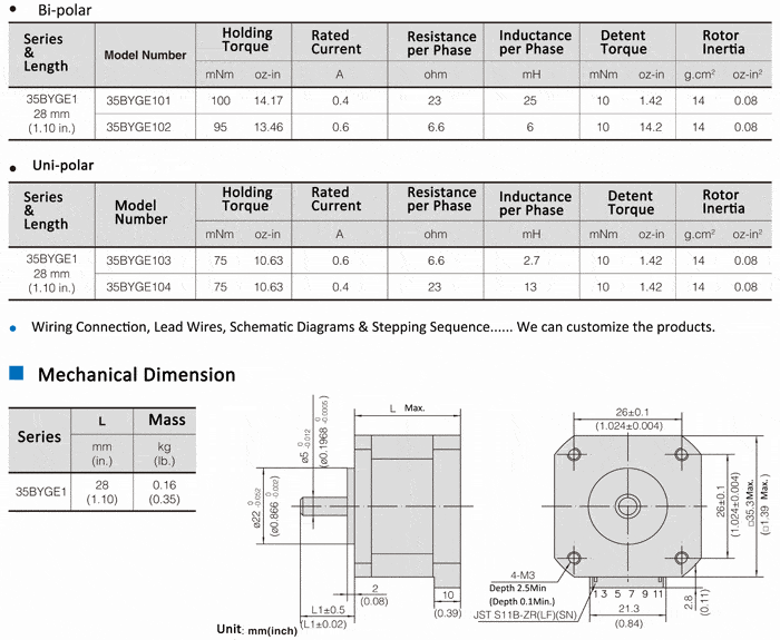 Contacts: Ms Rita LawMobile: (+86) 13631101993www.shengyangmotor.com Series & Length | Model Number | Holding Torque | Rated Voltage / Rated Current | Resistance per Phase | Inductance per Phase |